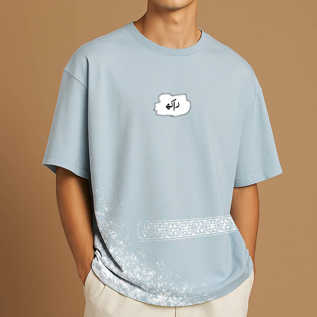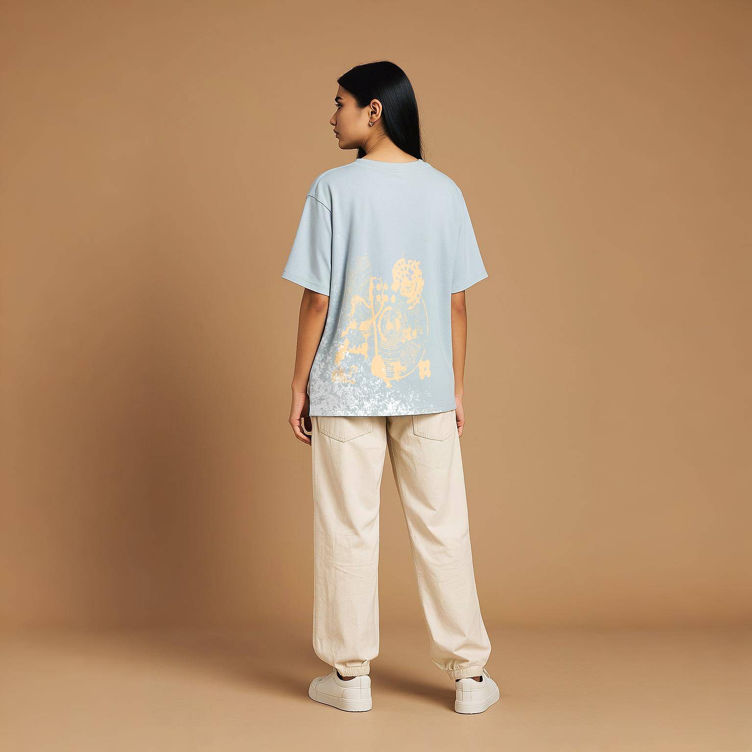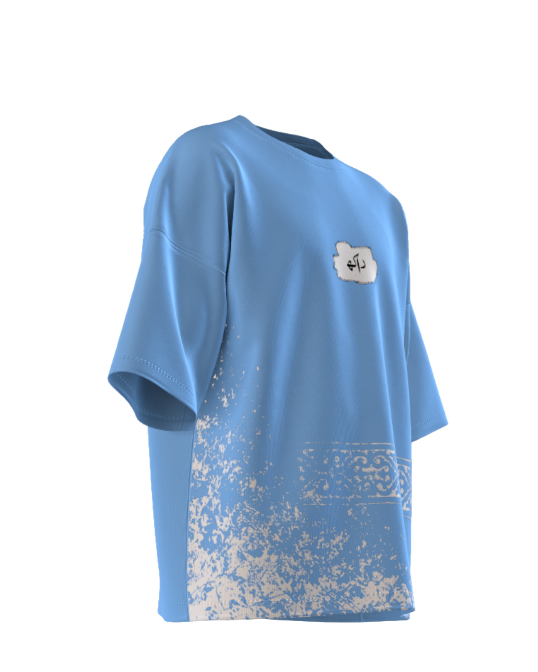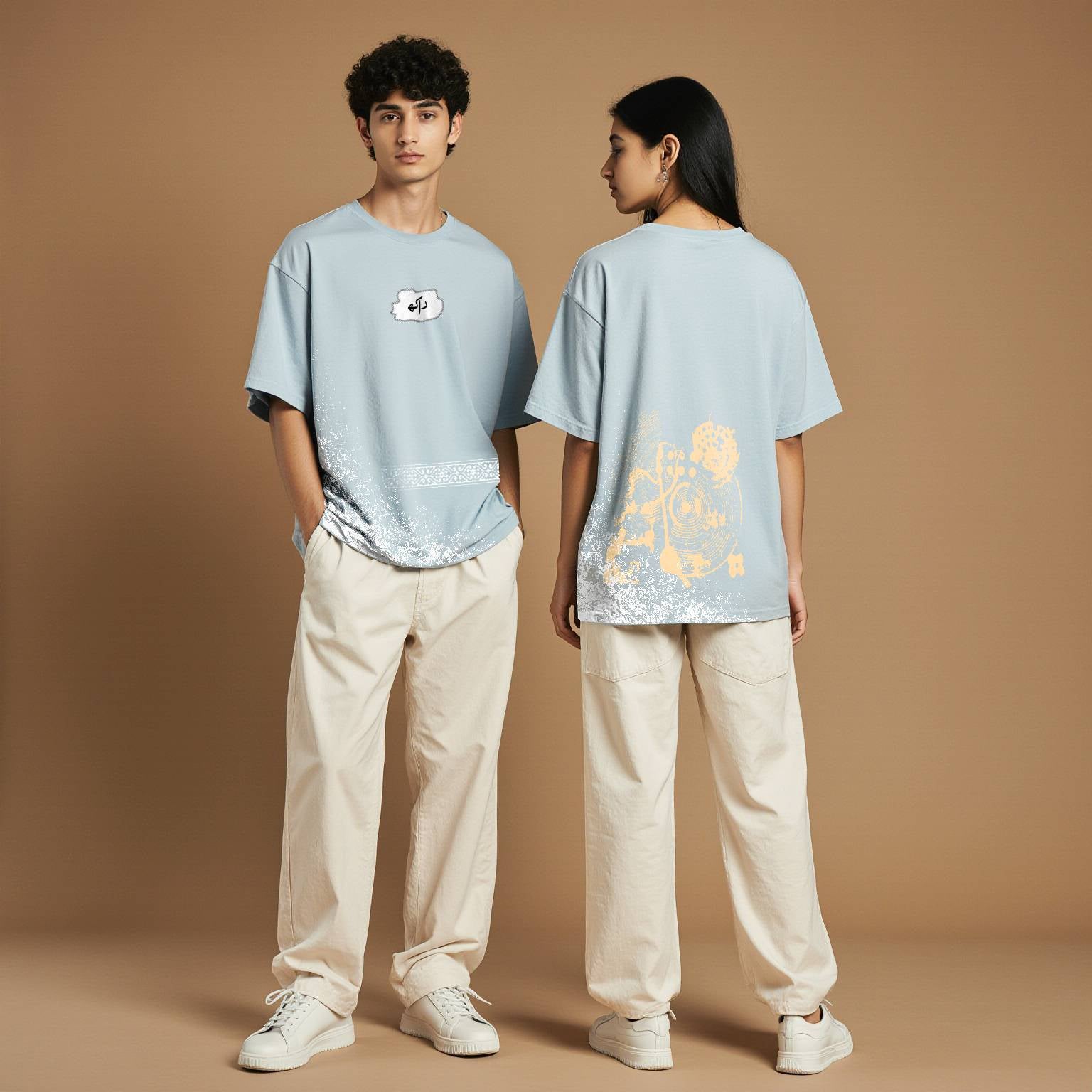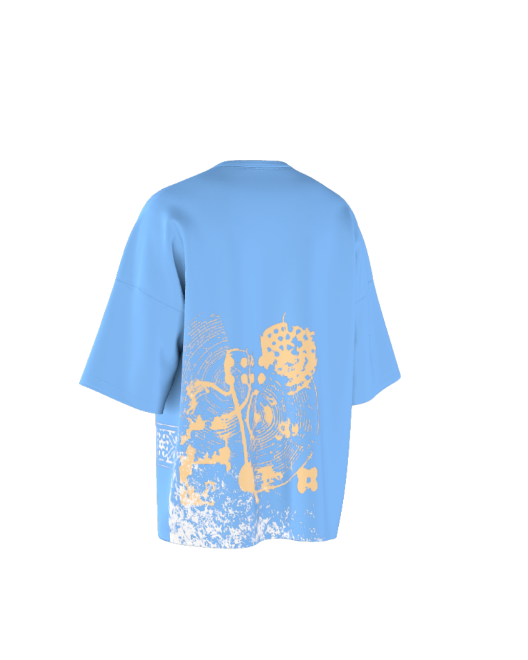 Asmaan captures the vastness of blue skies and the peace within them. With a summer-perfect sky-blue color, puff print logo on the chest, and screen-printed art on the back, it's designed for lightness — both in tone and soul