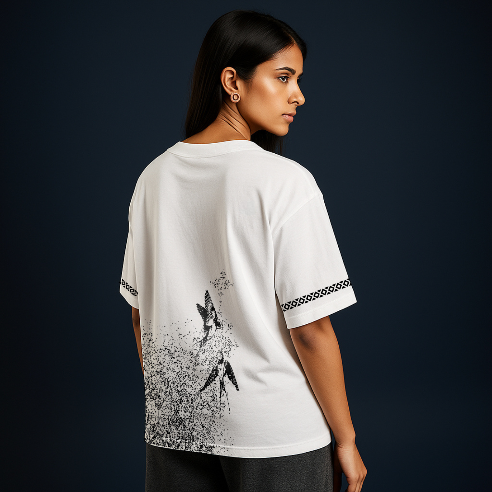 Parwaaz is built for those who move differently — who rise quietly, without asking for permission. The premium 200 GSM black shirt features a detailed embroidered logo and powerful screen-printed visuals on the back, creating a bold yet silent flight path