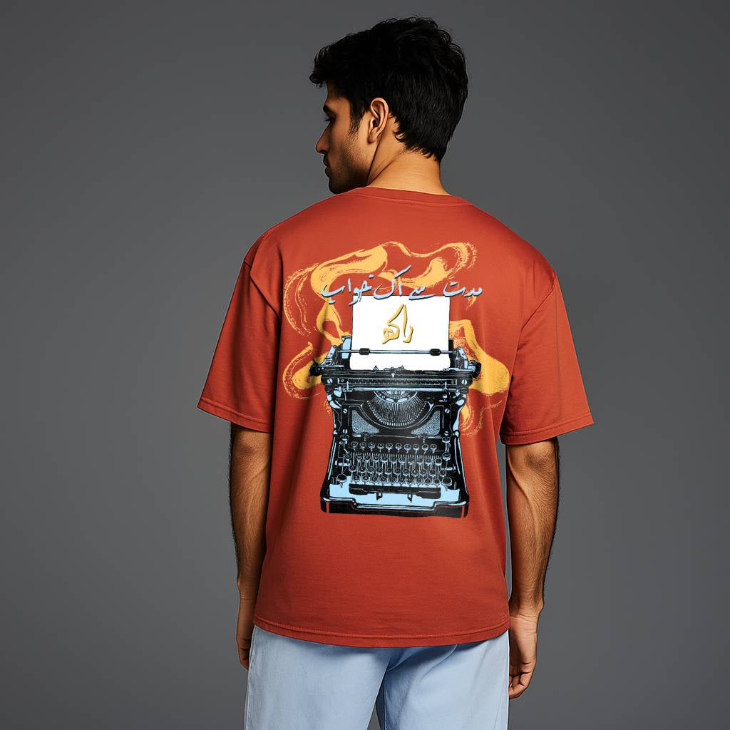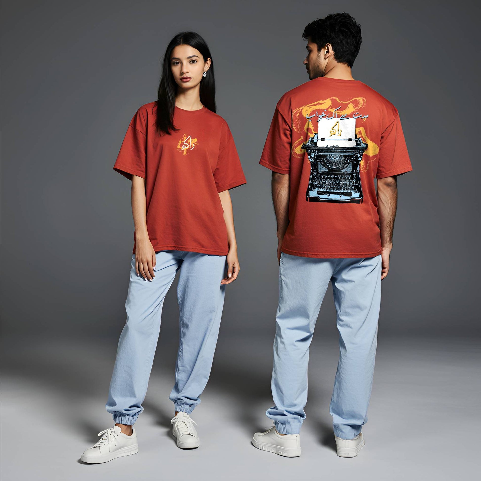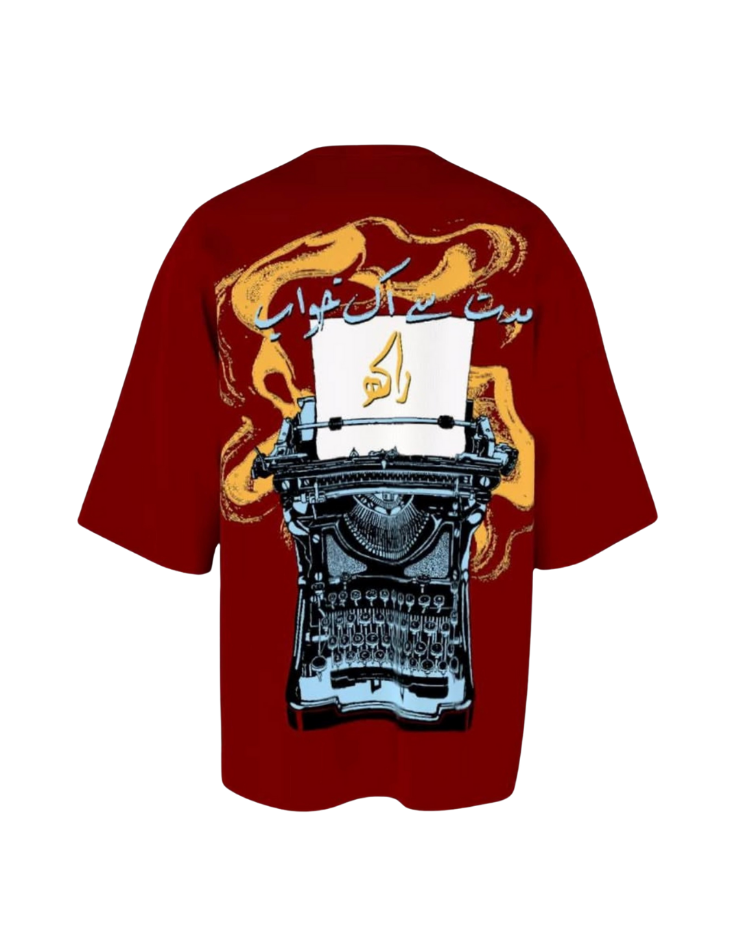Alfaaz is a tribute to the unspoken — to the voice that echoes through silence. Its deep maroon tone carries the weight of emotion, with a puff-printed Urdu logo on the chest and bold screen-printed artwork on the back — a visual echo of language that cannot be silenced